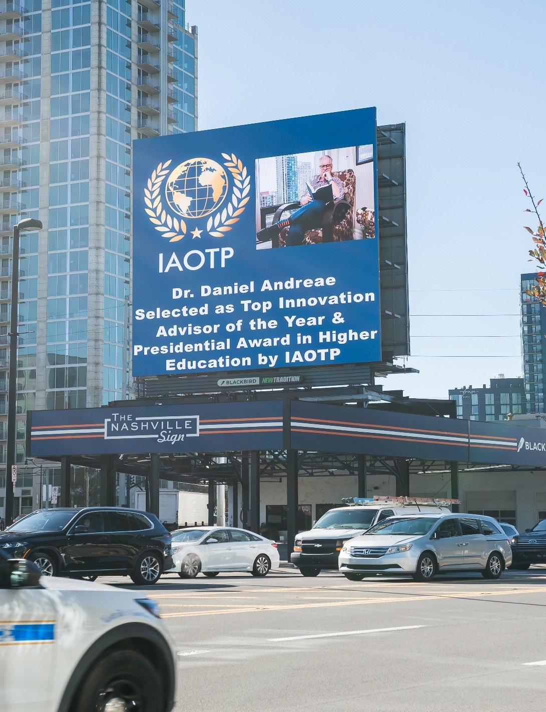 Dr. Andreae has won several honors and distinctions for his excellent leadership and devotion to Psychology and Higher Education during his amazing career. He has received international acclaim and continues to be involved in his community. The International Association of Top Professionals named him Top Innovation Advisor for 2024 Presidential Award in Higher Education 2024, Brain Health Advocate of the Decade for 2023 as well as Top Inspirational Member. Dr. Andreae was also named Philanthropist of the Decade for 2022 by the IAOTP. He has previously been named Top Professor of the Year in Higher Education, Professor of the Decade, and recipient of the coveted Lifetime Achievement Award. He was honored as Man of the Year and Male Visionary of the Year. Dr. Andreae was named Humanitarian of the Year in 2020 and received the International Hero Award for Higher Education. He was interviewed on TIP International Radio and appeared on numerous billboards in Times Square New York City: the iconic Reuters Building, Nasdaq Billboard, the Nashville Sign and the Planet Hollywood Billboard in Las Vegas. TIP (Top Industry Professionals) Magazine featured Dr. Andreae on the front cover, and TIP Magazine issued a special edition devoted only to Dr. Andreae.